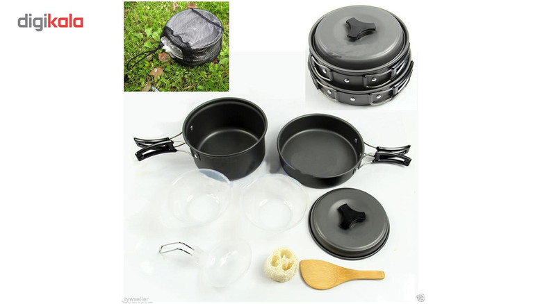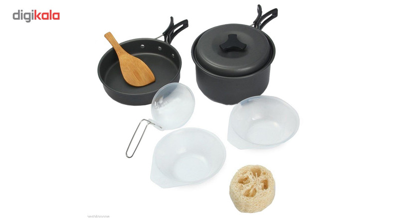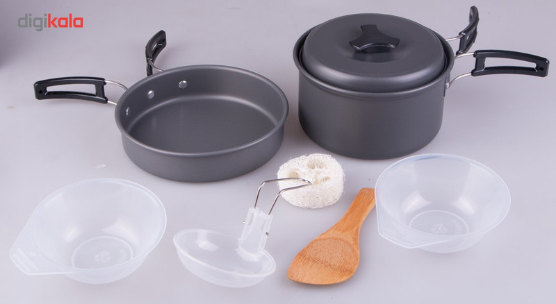 - دارای یک کفگیر چوبی کوچک - دارای یک ملاقه از جنس پلی پروپیلن با دسته تاشو فلزی - دارای یک تابه دسته دار با ابعاد 157 × 37 میلیمتر - دارای یک قابلمه کوچکتر در اندازه 138 × 68 میلیمتر - جنس بدنه فلزی